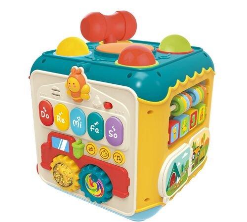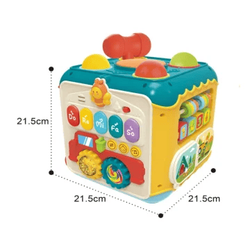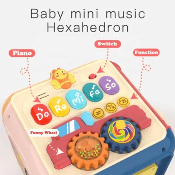 - 8 faces de plaisir : Profitez d’un plaisir sans fin avec les cubes d’activités à 8 faces qui combinent le classique et le nouveau. Porte, volant, engrenages et poutres, tri de formes colorées, horloge, musique et piano. Il y a tellement de choses à faire et à partager !