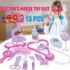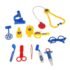 Comprend des accessoires de jeu de rôle : stéthoscope, seringue, thermomètre, ciseaux, pince médicale, lunettes et autres outils d’examen médical essentiels.