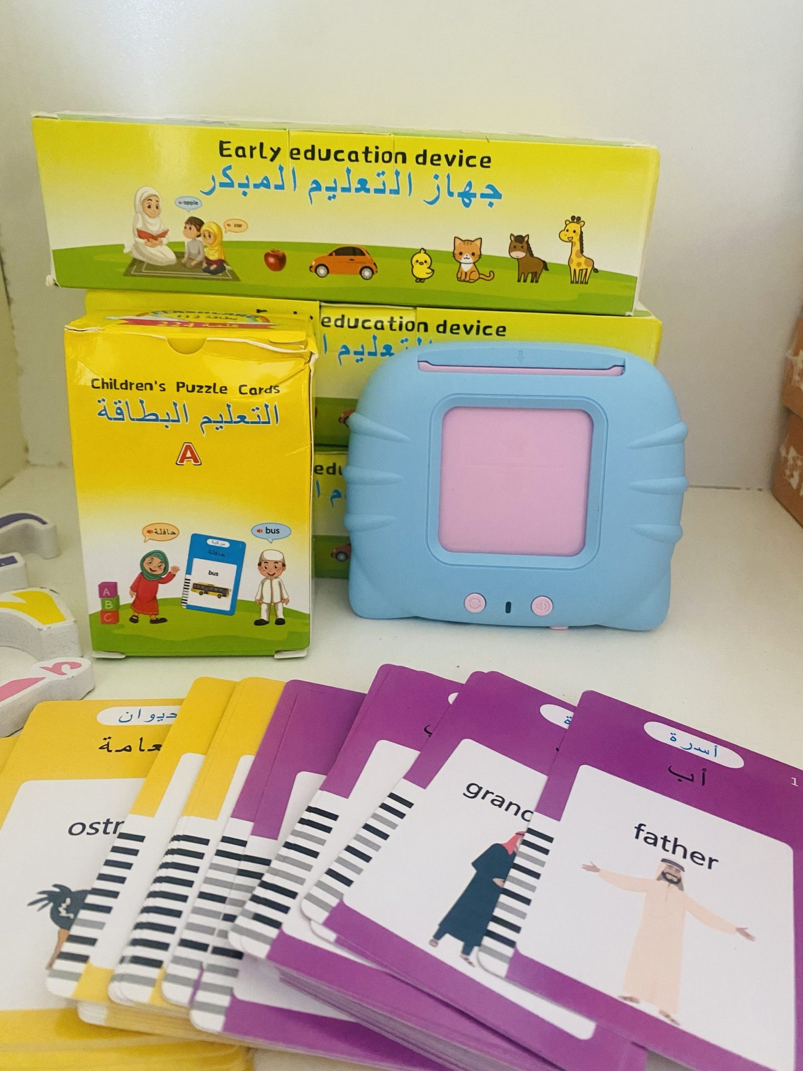 Lecteur de Cartes Sonore qui propose une Expérience d’Apprentissage Ludique et Bilingue pour développer le Vocabulaire de votre enfant en Français et en Anglais et en arabe.