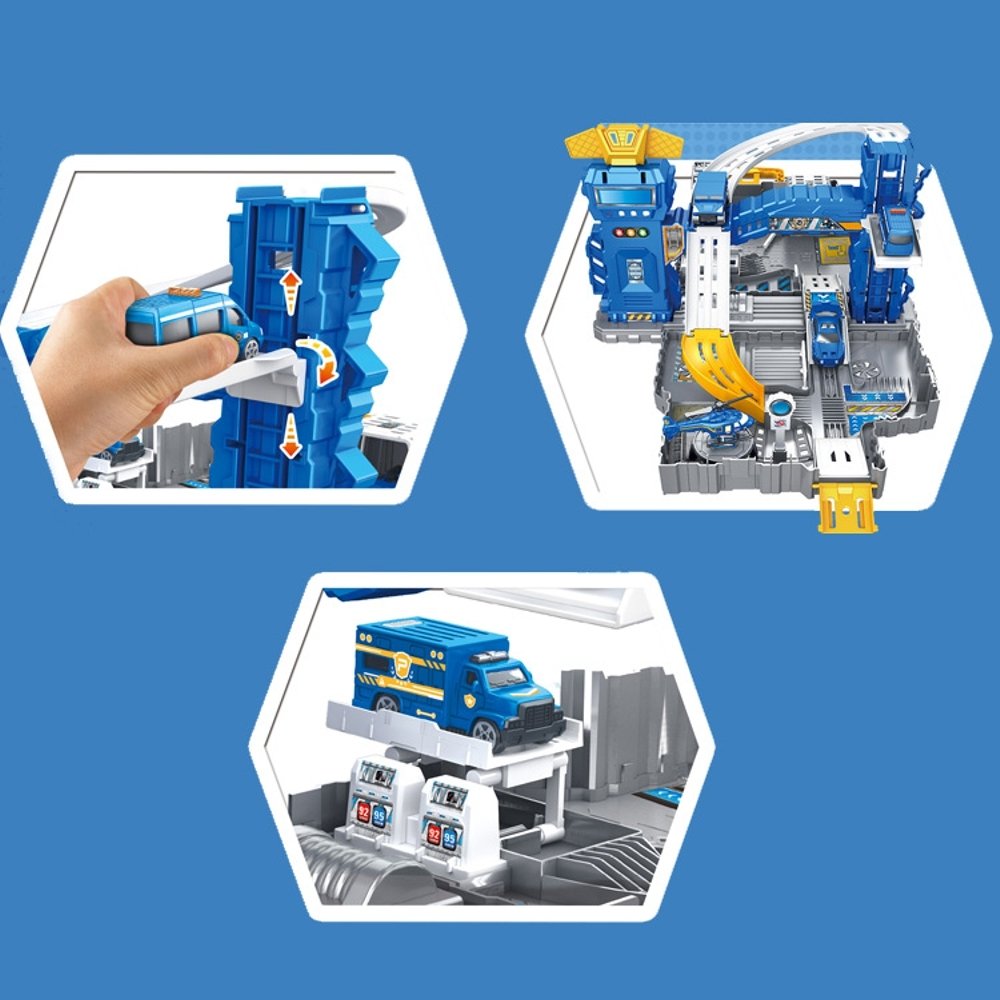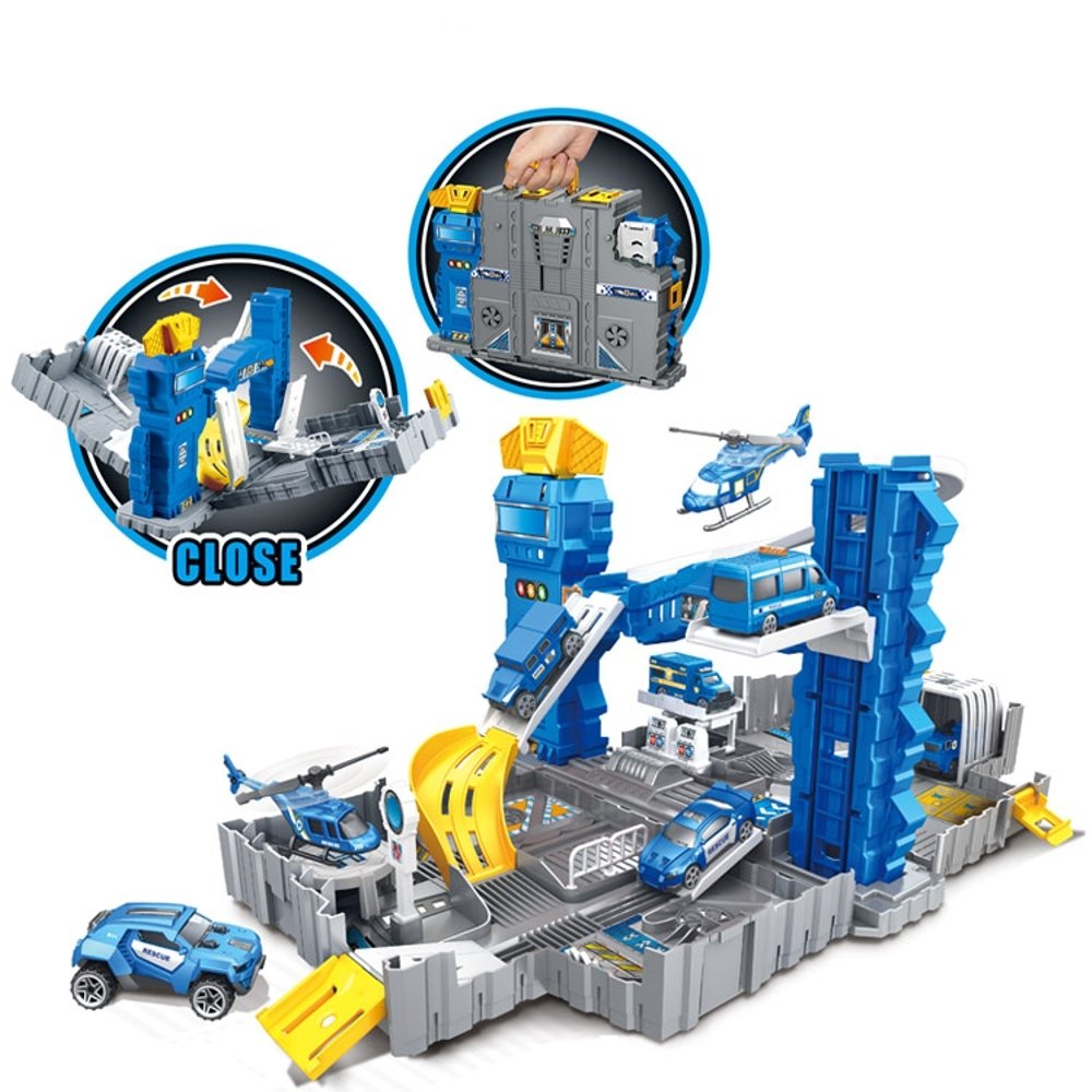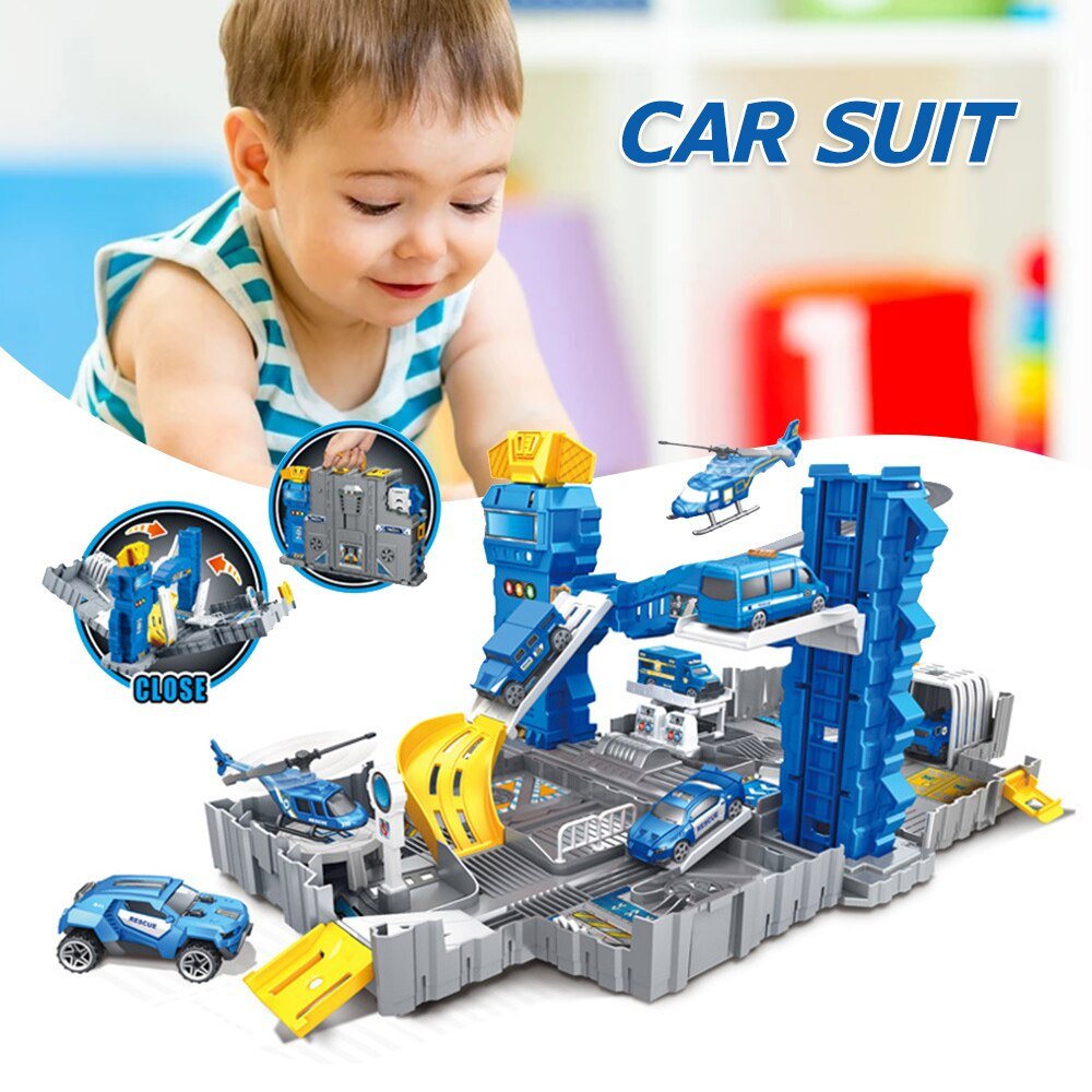 Ensemble de jeu de garage de stationnement de voiture à 2 couches, facile à transporter, meilleur cadeau pour les enfants, portable et durable avec poignée.