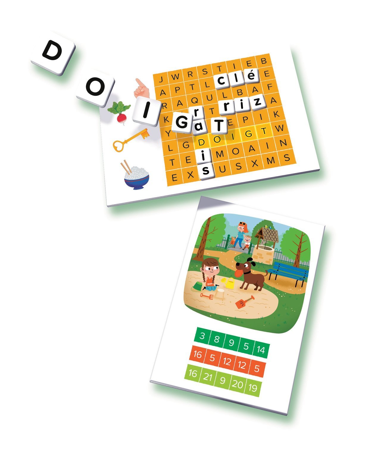 Jouer avec les lettres permet à l’enfant de mieux se familiariser avec l’alphabet et de se préparer progressivement à l’acquisition de la lecture. Ainsi, ce jeu de lecture éducatif améliore la compréhension de la formation des mots, les premiers concepts d’orthographe et la capacité de raisonnement.