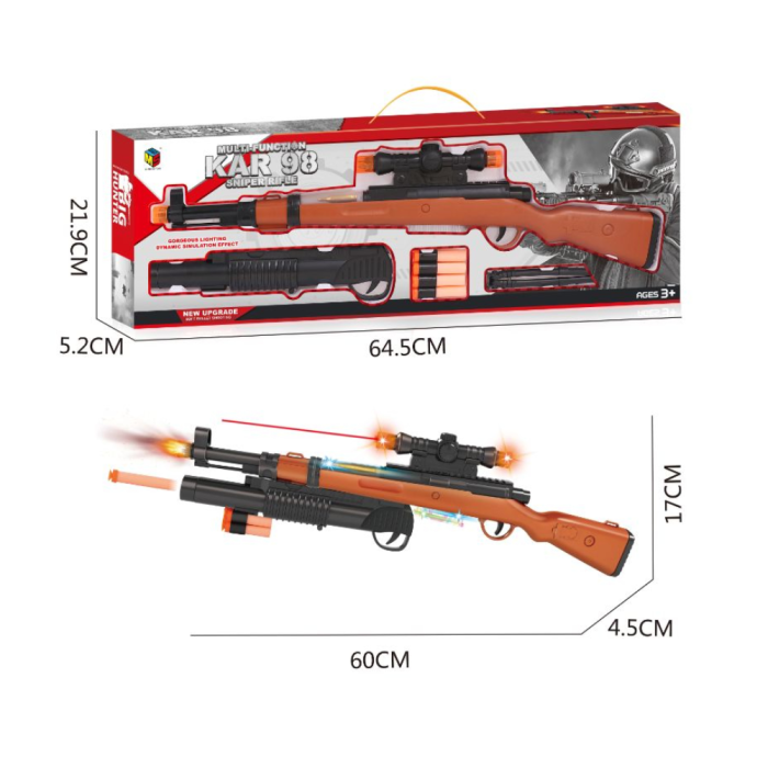 Fusil Sniper Musical AK KAR98 avec Lanceur de Grenades – Action et Effets Garantis