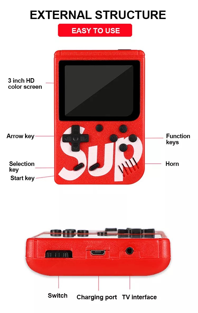 Léger et de petite taille, facile à transporter. Jeu classique intégré à la console de jeu, etc. Vous ramener à votre enfance heureuse, cela peut améliorer la capacité de coordination des enfants et apporter plus de plaisir. Parfait pour les enfants et les amis. Applicable au système de télévision, vous pouvez donc facilement profiter de jeux en direct et passionnants sur grand écran. avec télécommande