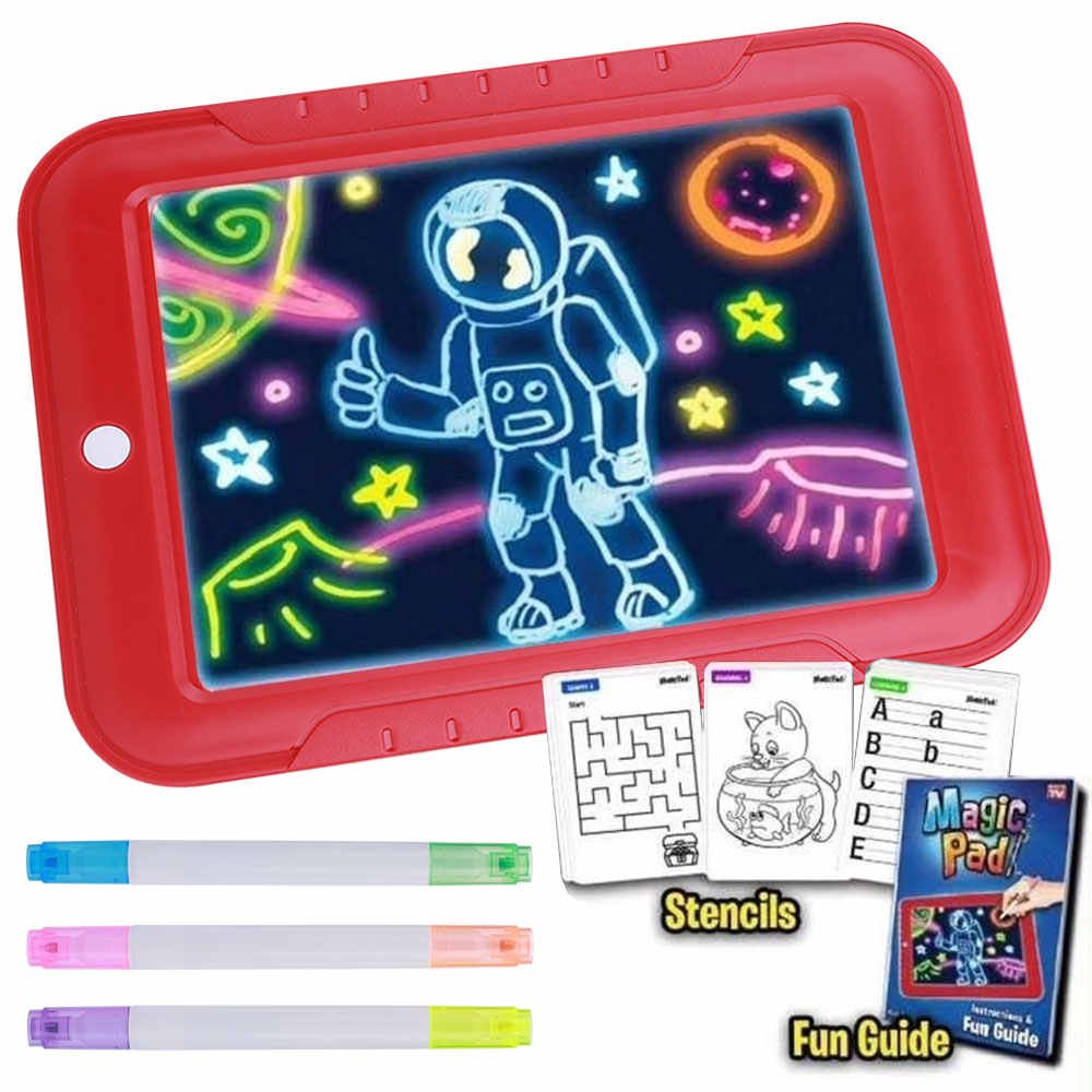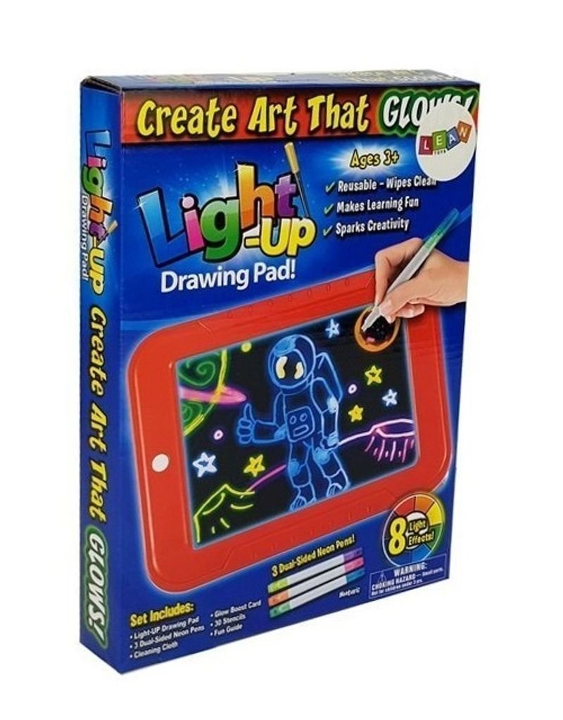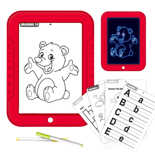 La planche à dessin lumineuse et amusante est un jeu éducatif qui plaît aux enfants à partir de 3 ans. Prenant la forme d’une planche à dessin, il met en valeur des œuvres plus petites. Équipé de 3 stylos bicolores et d’une gomme, vous permettant de créer divers dessins. Carte noire à piocher. Un guide et 30 cartes permettent des heures de plaisir et de jeu, d’apprentissage de l’orthographe, des mathématiques ou même de la lecture tout en s’amusant.