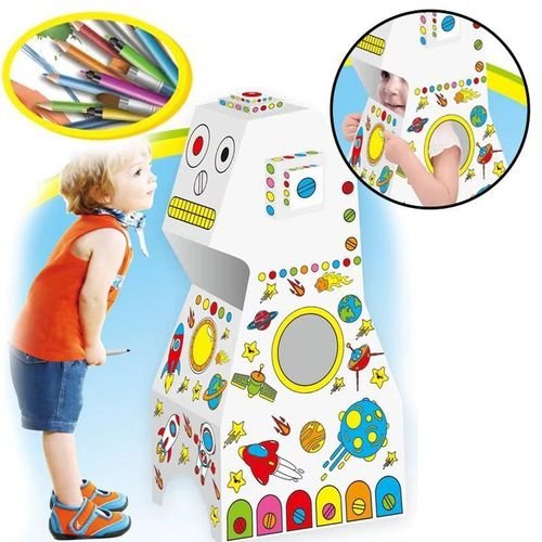 Les enfants vont adorer cette fusée en carton Small Foot ! Avec ses 105x105x169cm, c’est un vrai vaisseau spatial pour s’immerger dans des aventures intergalactiques. Le gros plus : on peut la décorer avec des crayons ou de la peinture pour la personnaliser. Les hublots se découpent pour regarder dehors, et la porte cockpit s’ouvre. Moi qui l’ai offerte à mon neveu, il y joue pendant des heures ! Le carton est solide, bien épais, et tient bien dans le temps. Les motifs d’aliens sont trop mignons. Parfait pour développer la créativité et l’imagination. Un jeu qui fait rêver et qui occupe intelligemment ! Attention aux petites pièces pour les plus jeunes.